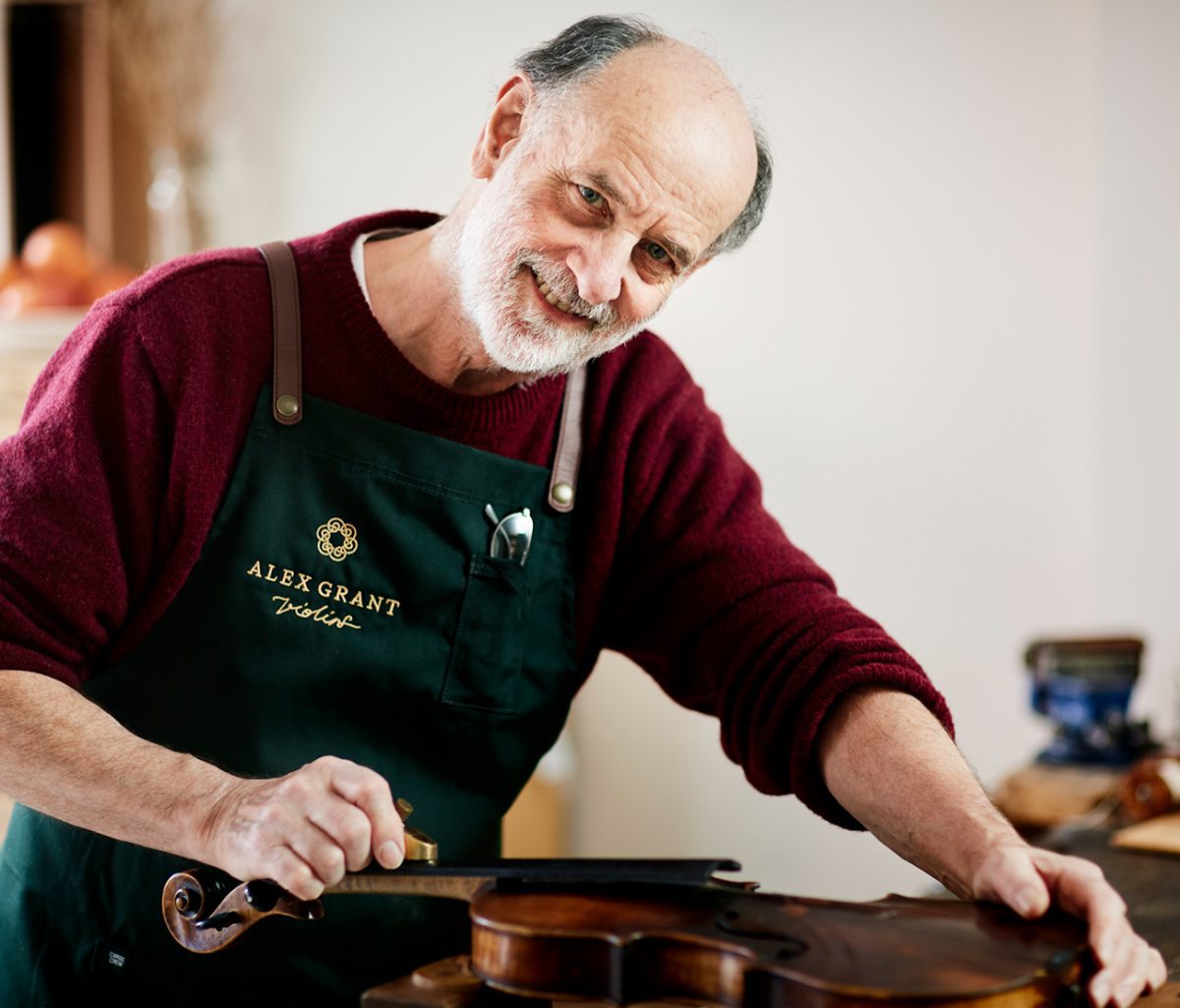 Born in the Highlands of Scotland, Alex participated in music making from an early age. He was given his first violin at the age of four and although he gained some playing skills, it was the construction of the instrument that fascinated him and, in his teens, he was repairing his own and other local musician’s instruments.