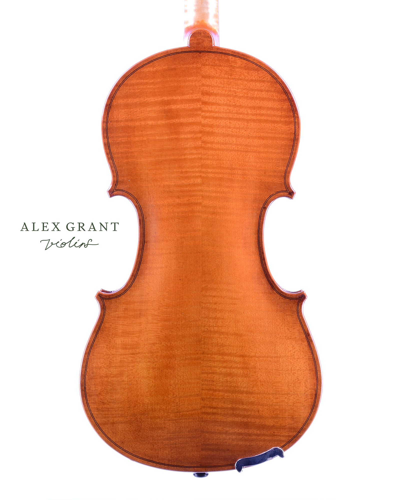 Based on his personal model, inspired by the Italian masters of the 18th century this violin features a trimmed back body size reminiscent of Giuseppe del Gesu. Malcolm’s violin has a great voice for a smaller instrument. The warm golden coloured varnish is of his own make using the fossilised resin of the New Zealand Kauri Pine, a rare and highly valued resin for varnish making.